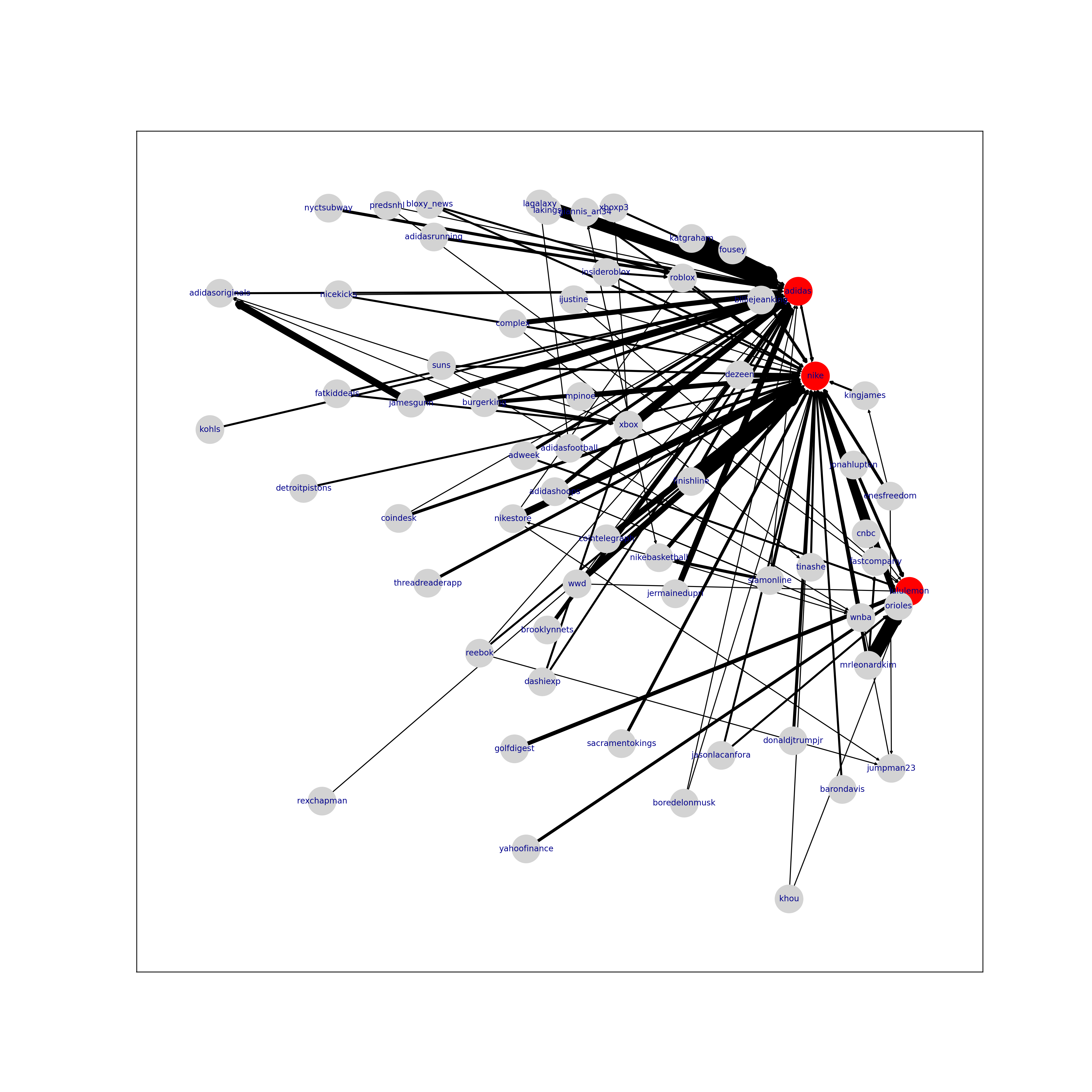 • Create Twitter Mentions Graph: Build a directed, valued graph to identify central Twitter users for each brand and visualize how mentions flow between users.