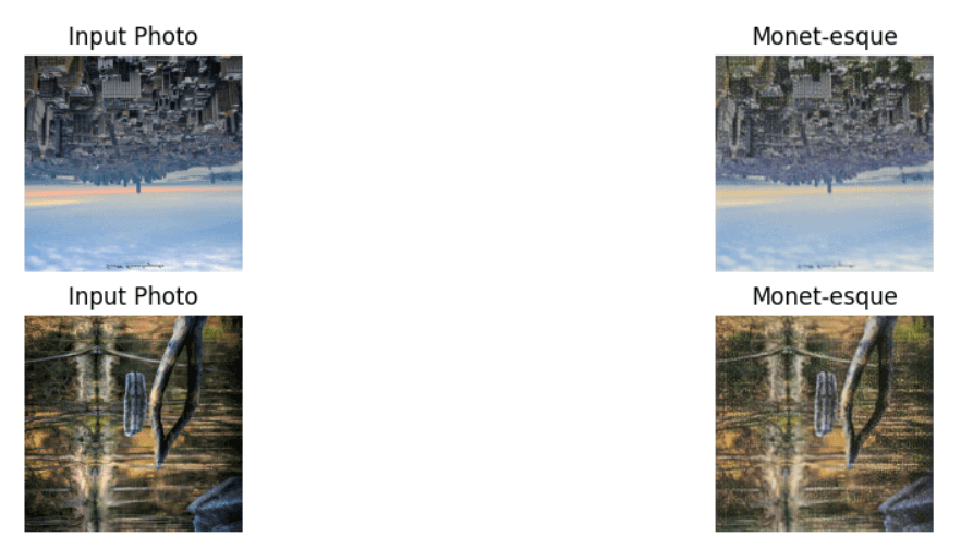 • Model Architecture: The project involves building a CycleGAN, with two models—a generator and a discriminator. The generator is trained to create Monet-like images from input photos, while the discriminator distinguishes real Monet paintings from generated images. This adversarial setup drives the generator to improve continuously.